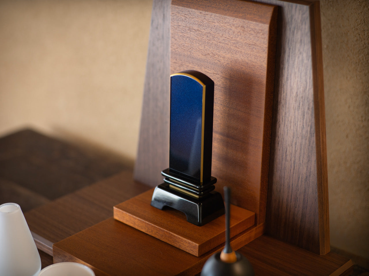 モダン位牌「渦音-うずね-」シリーズの青グラデーションのお位牌です。