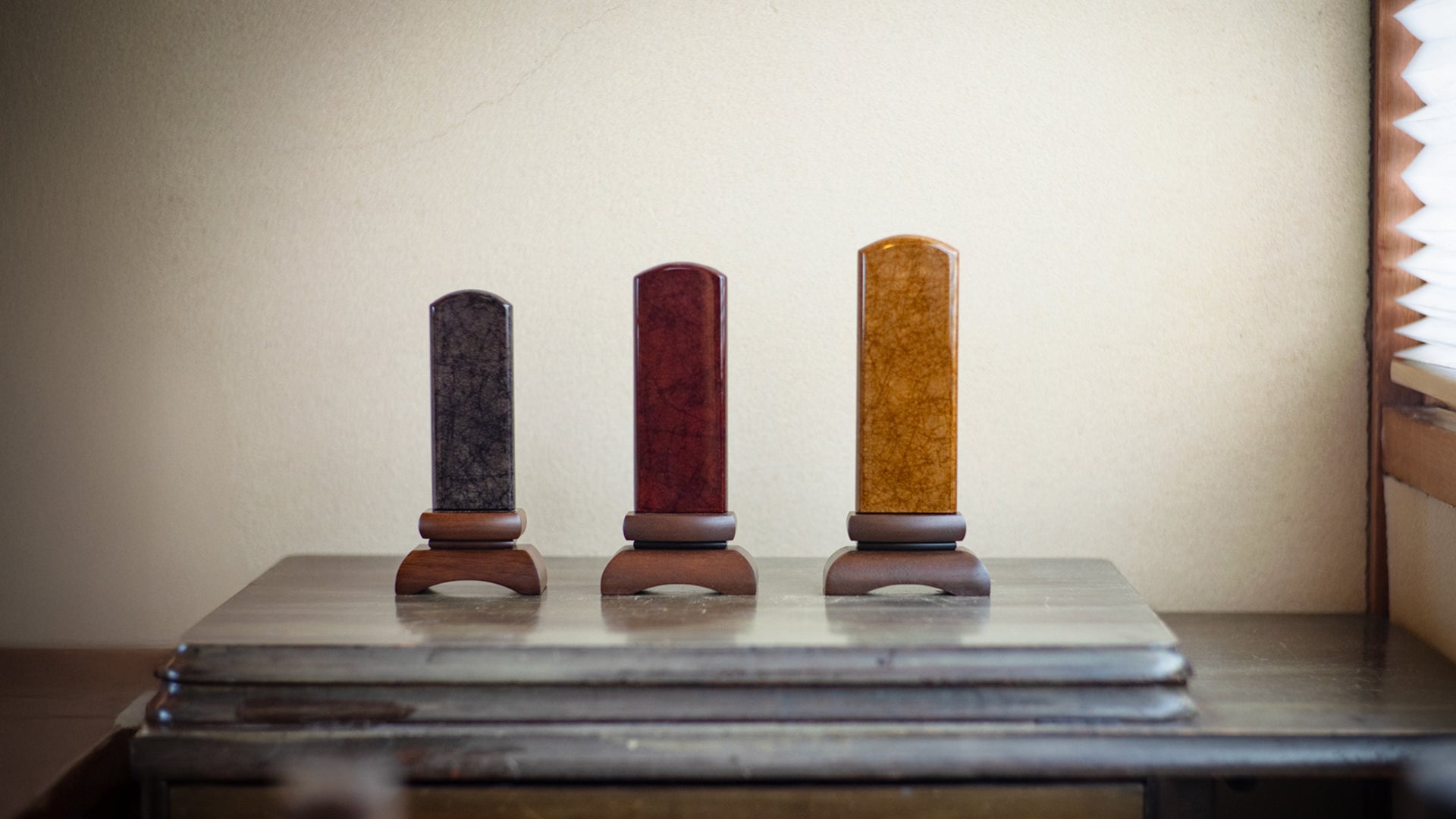 特にみかげ塗は阿波塗の代表的な塗装技術として、決して他にはできない独自の技法によって完成されています。和紙の乾燥だけで数か月、そこからお位牌となるまでにもかなりの時間を要します。