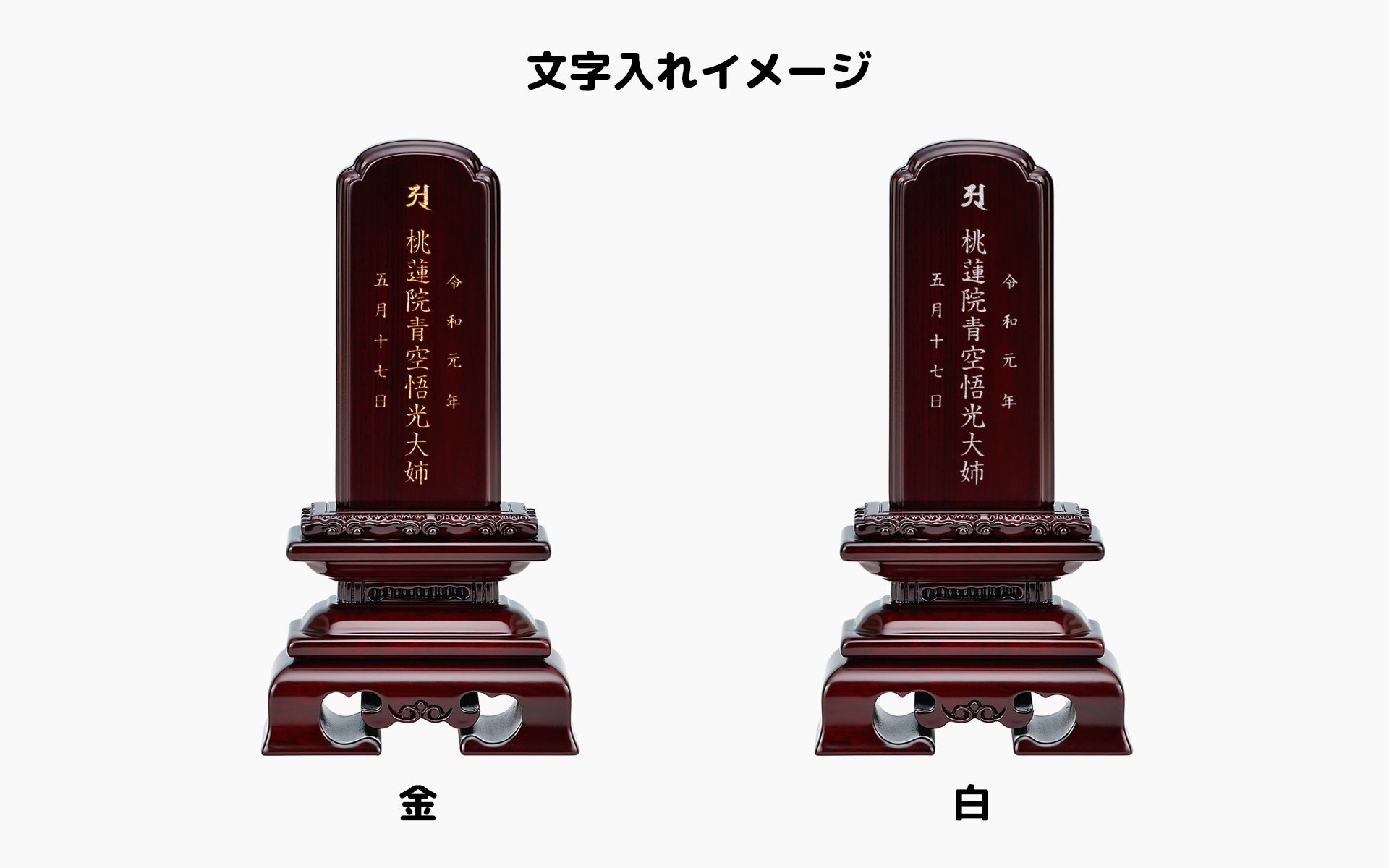 勝美の形は、全体的に丸みのある形状で、やさしくすっきりとした印象を与えます。華やかな装飾が魅力的な伝統的なお位牌です。