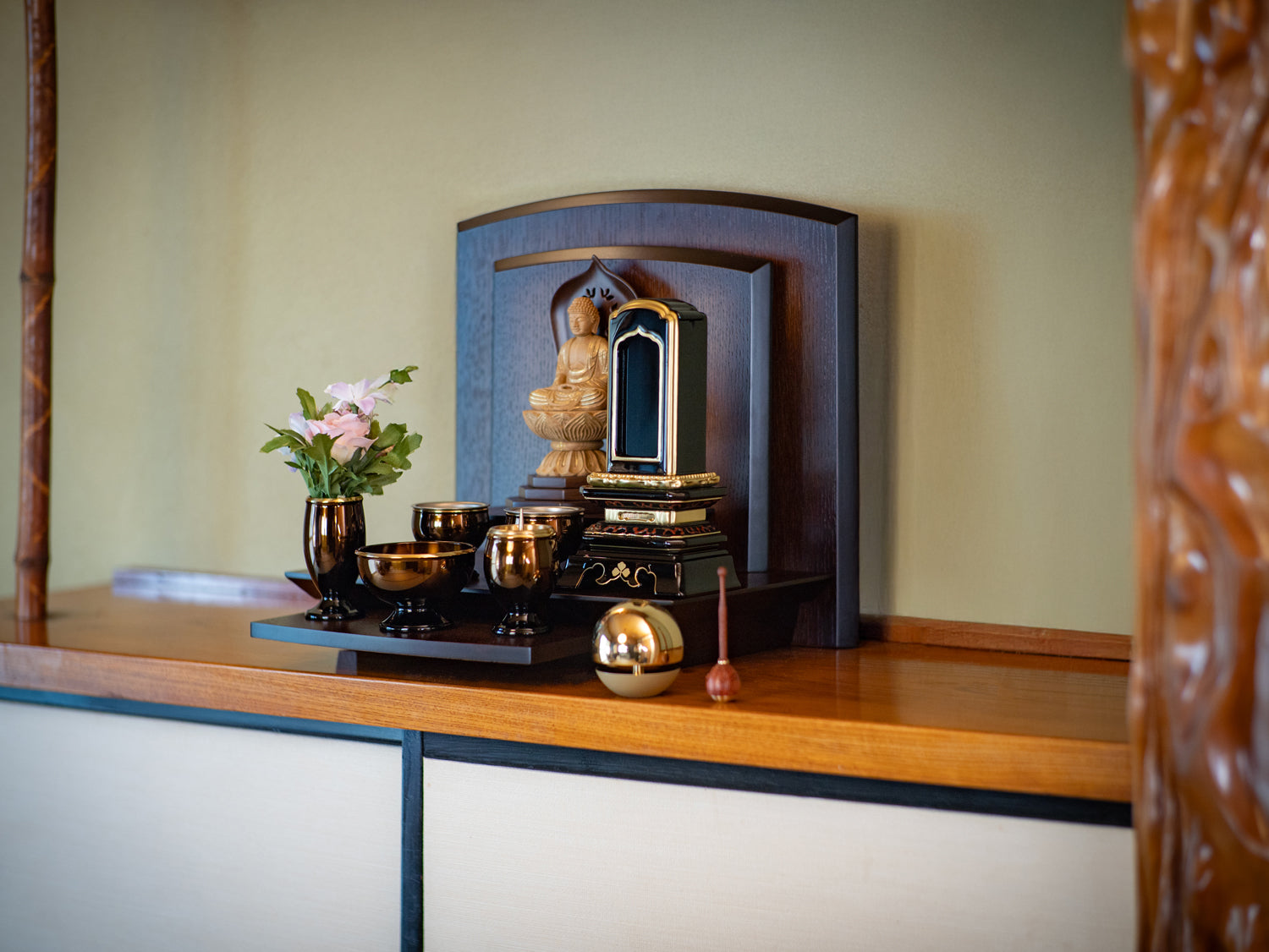小さな仏壇でも、それに合わせて小さなサイズのお位牌をお選び頂ければ、全体としてもとてもバランスの取れた祈りの空間となります。