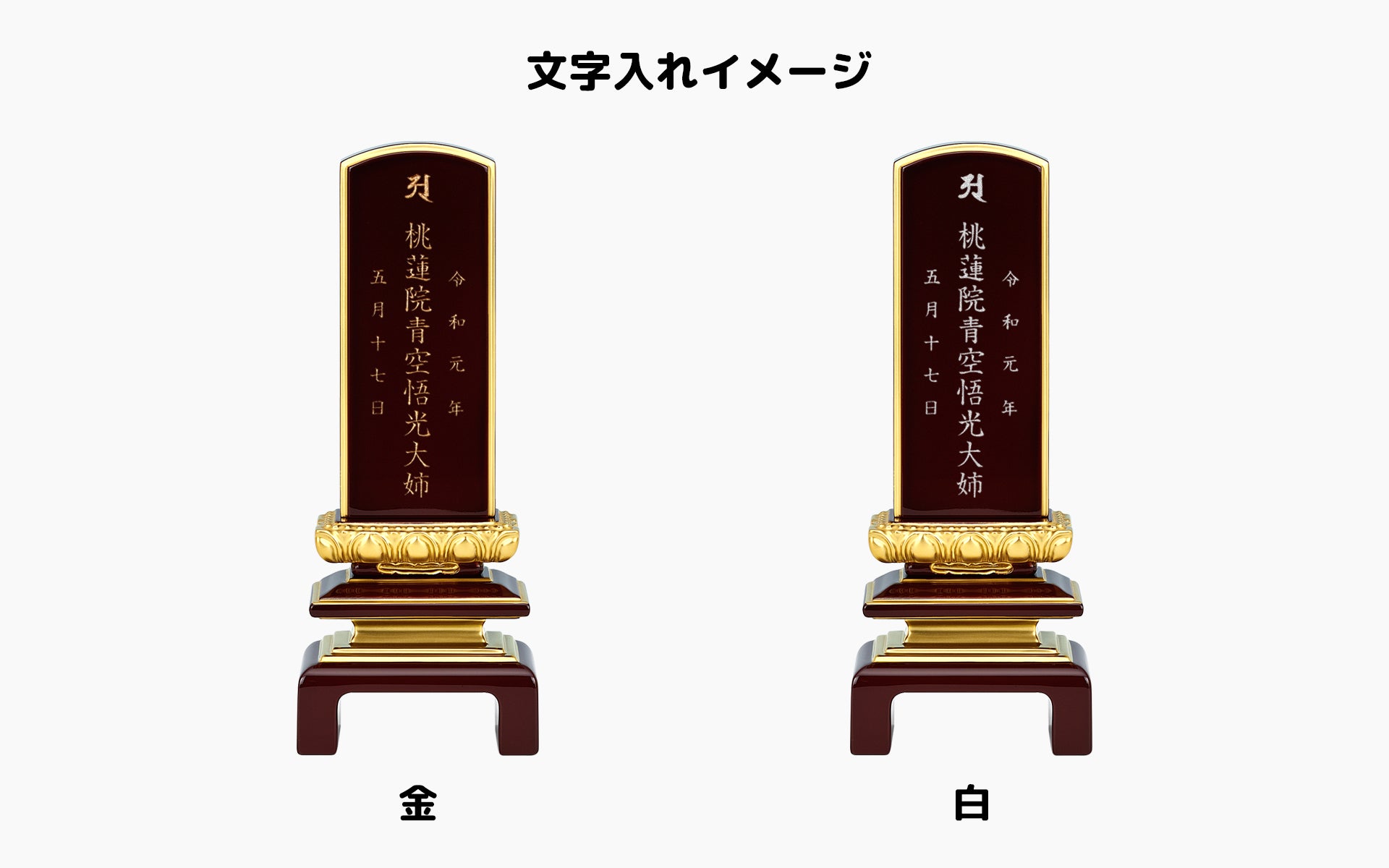 弊社のお位牌はすべて日本の金入れの職人が、1本ずつ機械と手作業で金入れを行っております。より光沢が出るような金入れを行っており、多くの方に美しい仕上がりとご評価を頂いております。