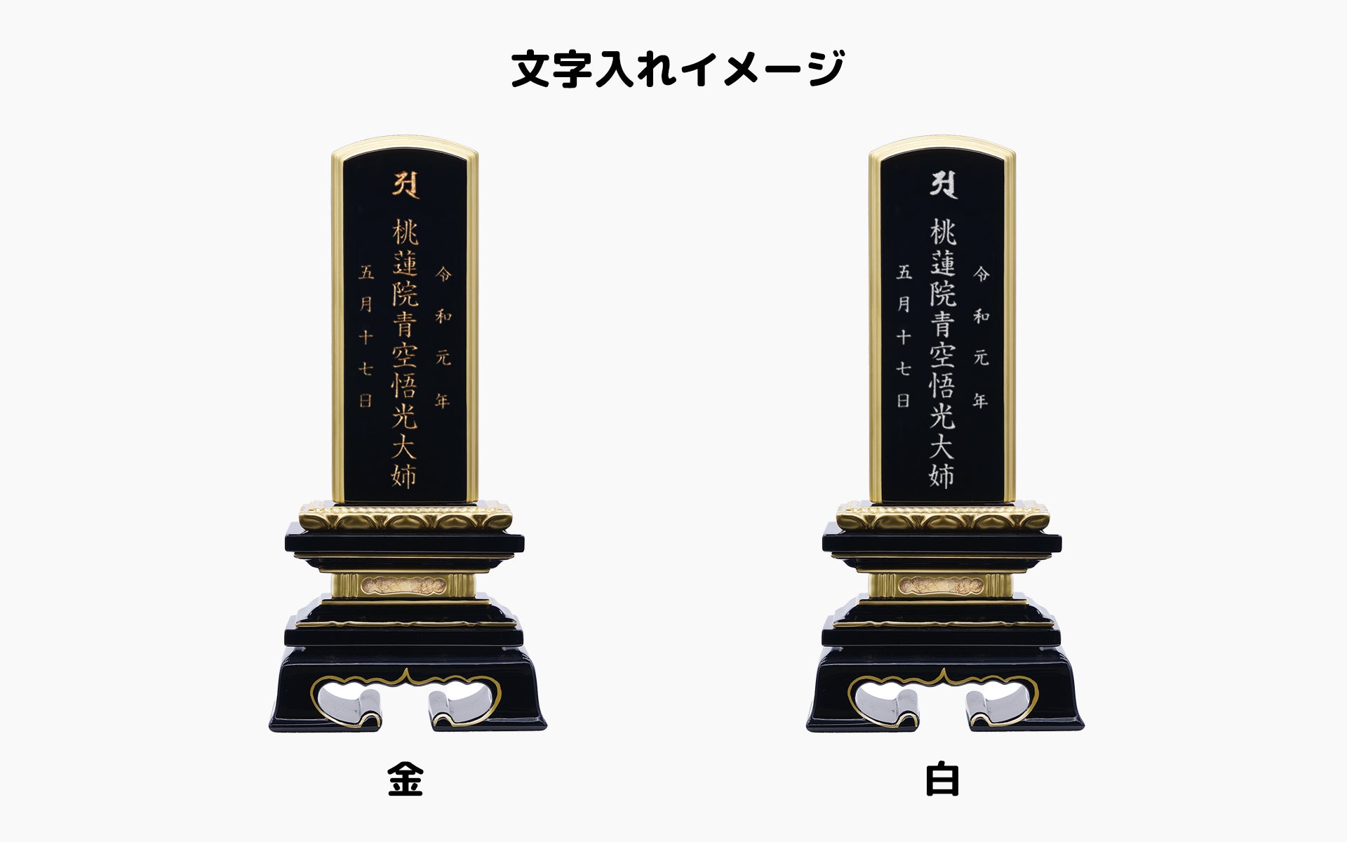 弊社のお位牌はすべて日本の金入れの職人が、1本ずつ機械と手作業で金入れを行っております。より光沢が出るような金入れを行っており、多くの方に美しい仕上がりとご評価を頂いております。
