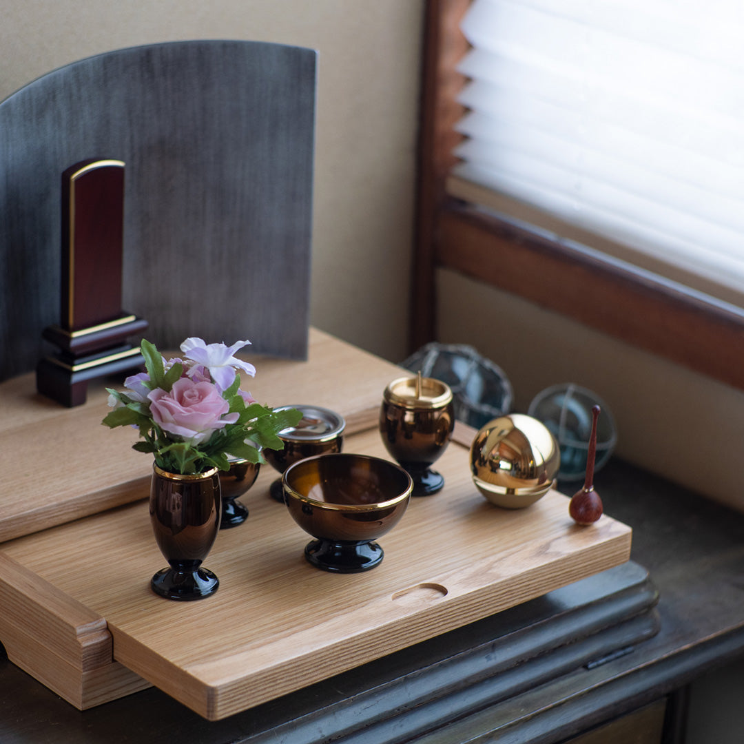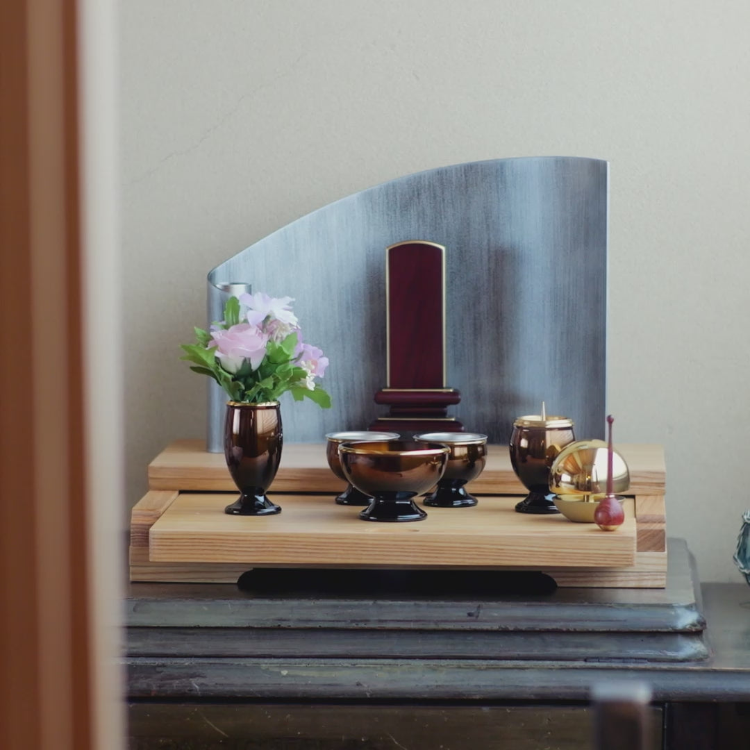 たまゆらリンは、逆さのお椀型のベルが1本の支柱で支えられており、りん棒で鳴らした際にゆらゆらと揺れるのが可愛いおりんです。