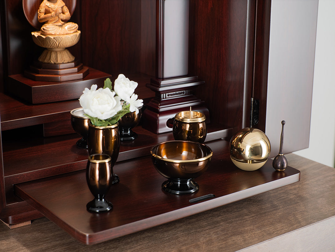 おりんとリン棒のセットで、りん棒は「黒丹」と「カリン」の素材の2種類ございます。